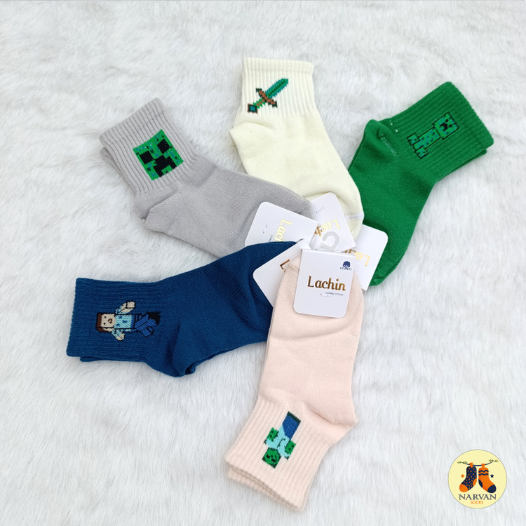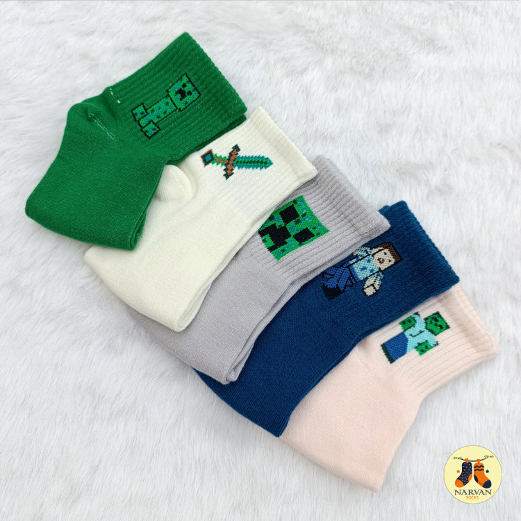 جوراب ماینکرافت بچه گانه نیم ساق جنس نخ پنبه ۹۵% سایز ۳۴ تا ۳۸ وارداتی درجه یک
