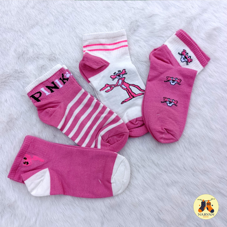 جوراب پلنگ صورتی زنانه دخترانه نیم ساق جنس نخ پنبه 95% وارداتی درجه یک