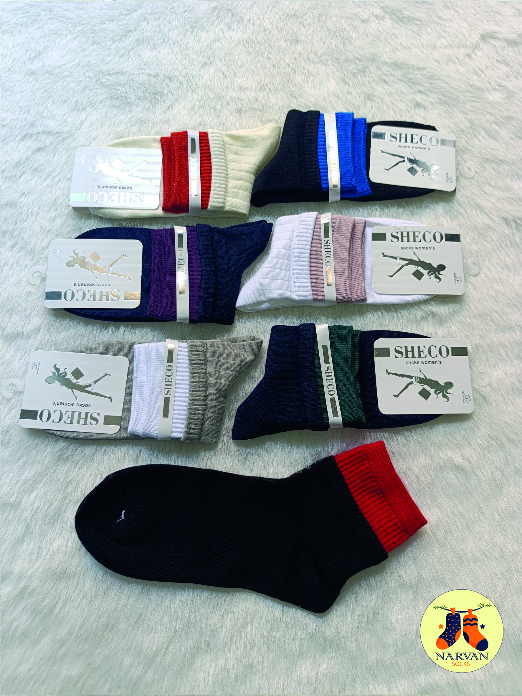 جوراب دو کش زنانه نیم ساق جنس نخ پنبه ۹۵% سایز ۳۶ تا 42 وارداتی درجه یک